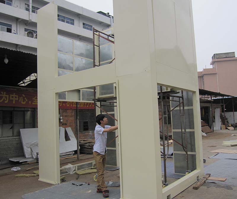 工業(yè)隔音房可根據(jù)機(jī)器設(shè)備的使用情況,設(shè)計制作為兩種類型,一類是由于機(jī)器體積較大,設(shè)備檢修頻繁又需要進(jìn)行手工操作,此時采用大的隔音房把機(jī)器維護(hù)起來,并設(shè)置門、窗和通風(fēng)管道;另一類隔音房則是在高噪聲環(huán)境中隔出一個安靜的環(huán)境,以供人觀察機(jī)器運(yùn)行或是休息使用。